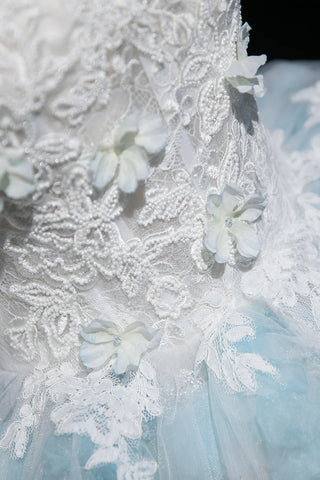A Line Lace Flower Blue Sparkle Prom Dress