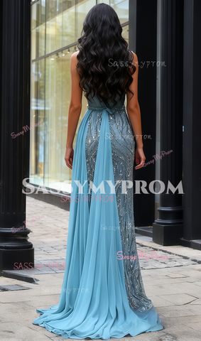 Sheath Column Beading One Shoulder Tulle Prom Dress