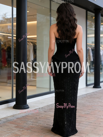 Beading Sequin Sheath Column Red Sweetheart Prom Dress With Slit