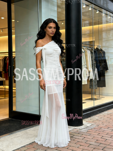 Off The Shoulder Mermaid Tulle Ruched Prom Dress