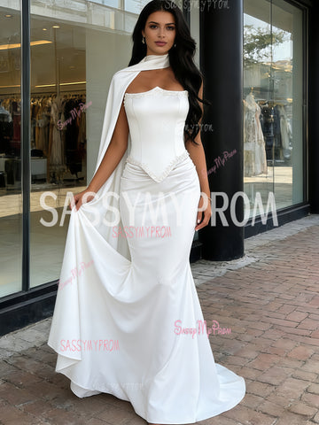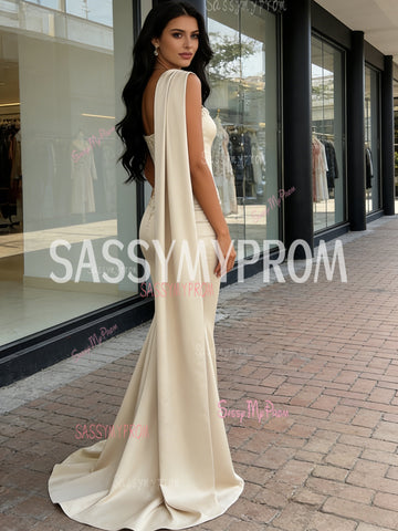 Trumpet Mermaid Satin Shawl Champagne Beading Prom Dress