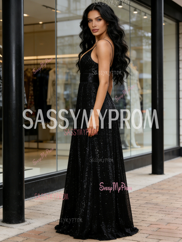 Spaghetti Straps Sparkle Tulle A Line Prom Dress