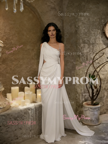One Shoulder Beading A Line Cut Out Chiffon Wedding Dress