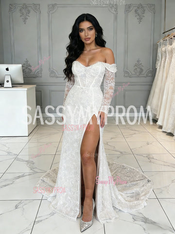 Lace Long Sleeve Trumpet Mermaid Wedding Dress With Slit