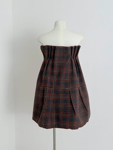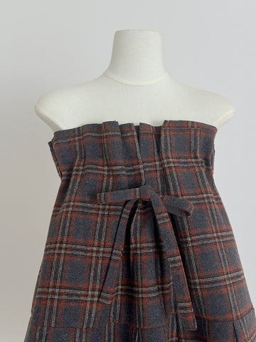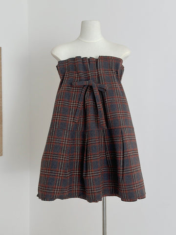 Plaid Strapless A-Line Mini Dress with Self-Tie Bow