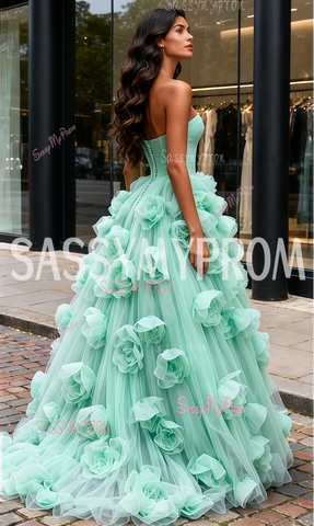 Tulle Sweetheart Flower Mint Green Prom Dress With Slit